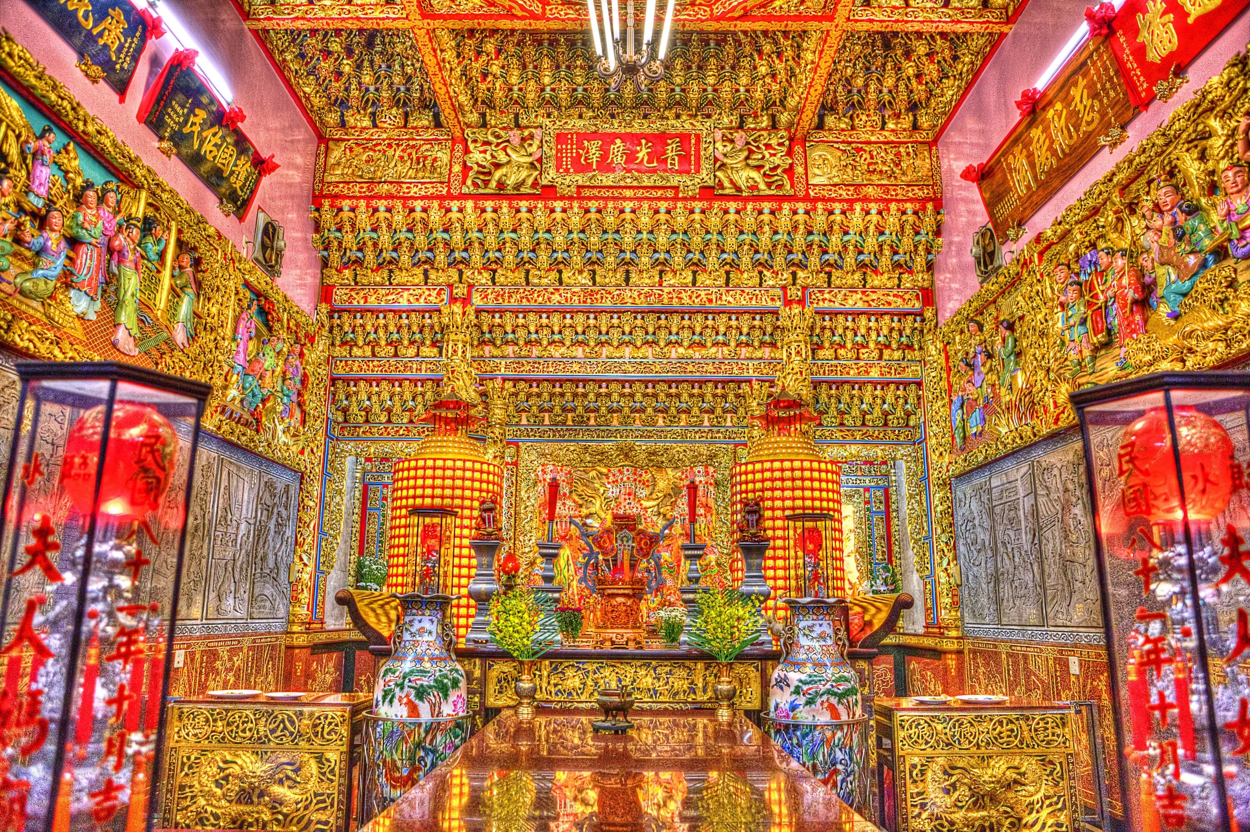 De indrukwekkende praal in de Lady Linshui tempel in Tainan, Taiwan @David Mills