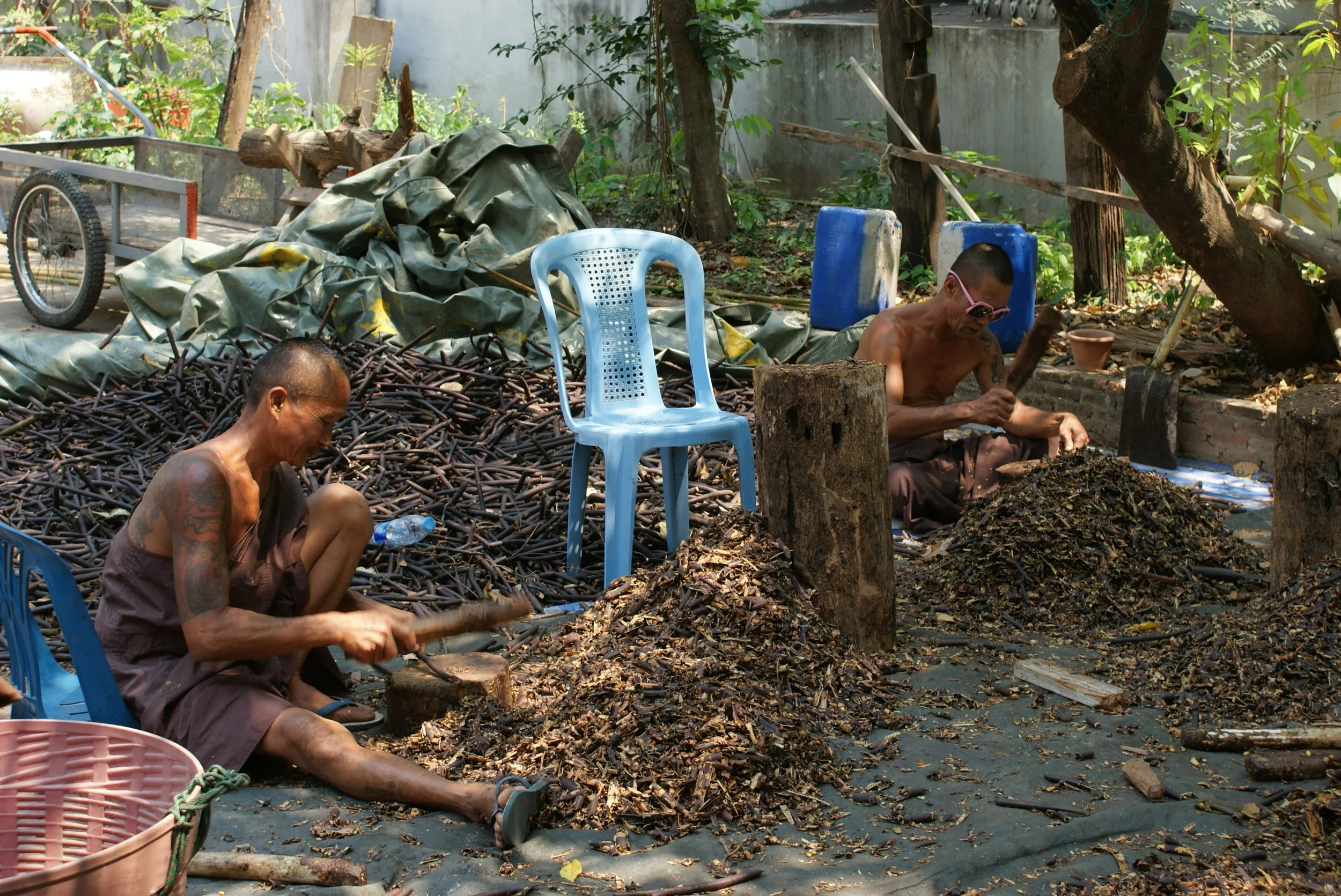 De monniken maken de kruiden klaar voor de behandeling van hun patiënten @Glenn Casaer