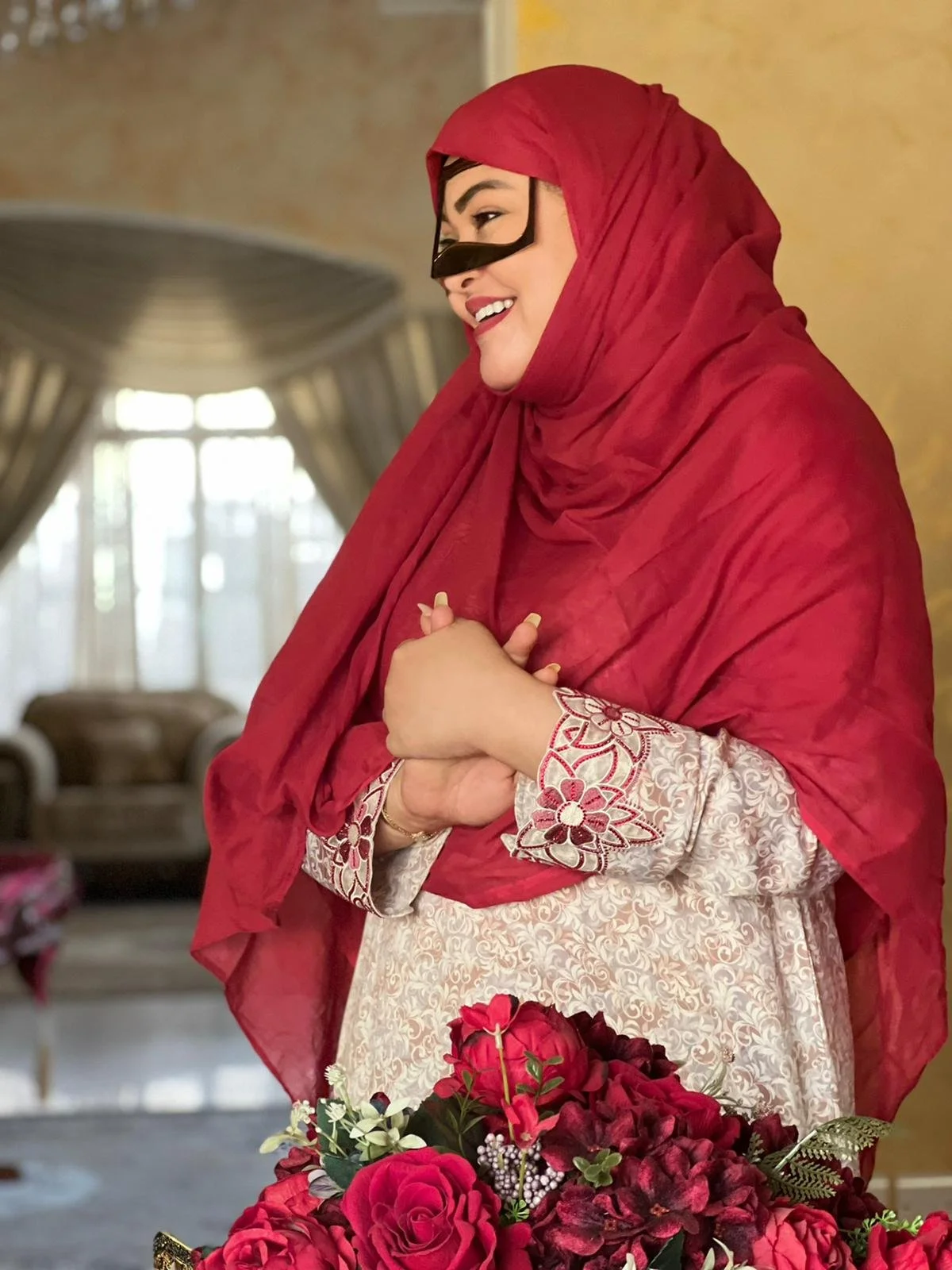 Asma, een van de vriendelijke Emirati die onze reizigers ontvangt om te komen eten en om over haar leven te praten