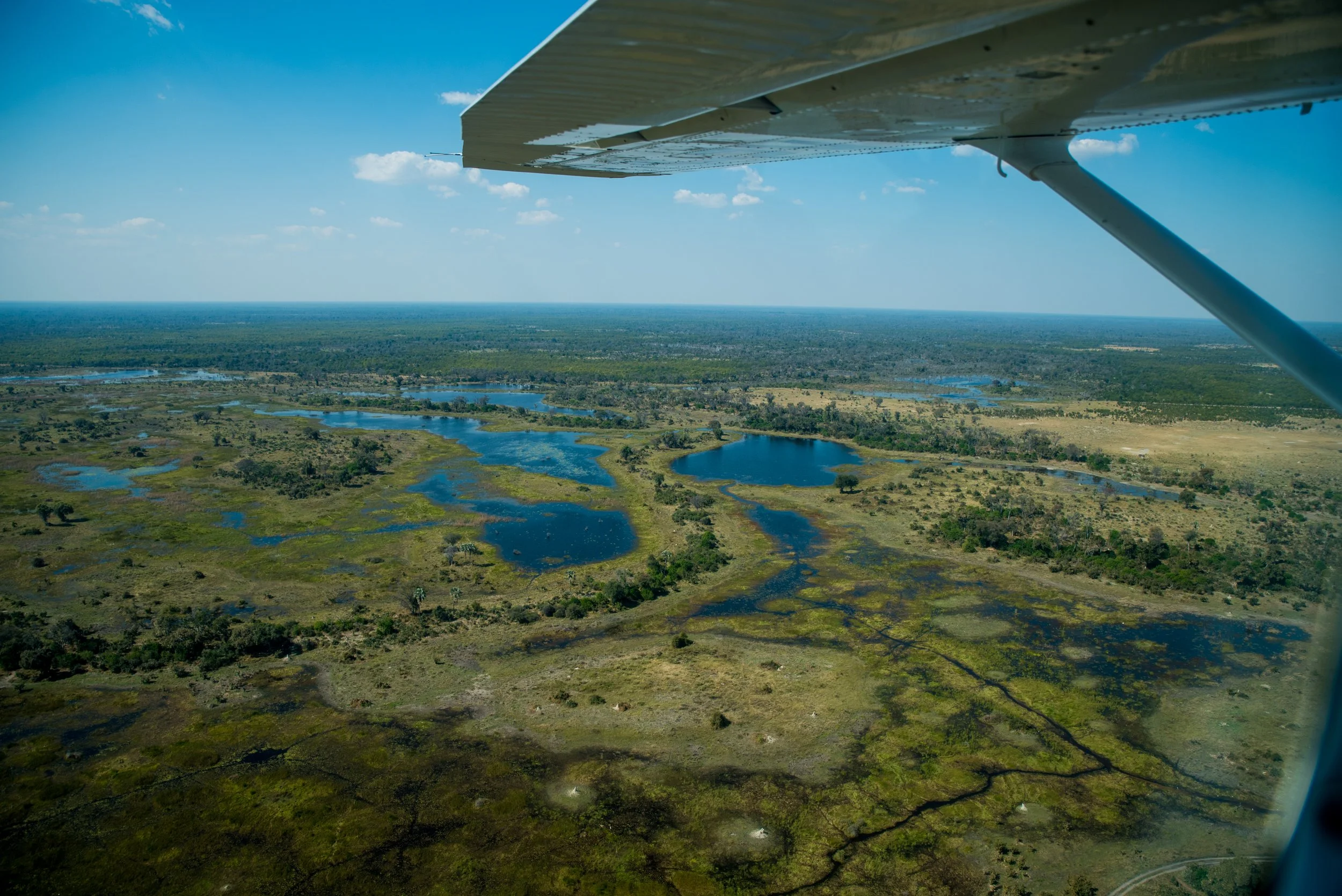 Linyanti is een privé-concessie waar je pas echt het “out-of-Africa” gevoel zal beleven. Het gebied meet een 5000 km2, met slechtse enkele lodges, met in totaal 118 bedden in deze regio. Concessies zijn door hun naam meestal niet zo gekend als de natuurparken waar ze aan grenzen. Natuurlijk staan er geen afsluitingen tussen de verschillende gebieden en beschouwen de dieren dit als hun groot natuurgebied. De te respecteren regels tussen natuurparken en concessies zijn echter wel heel anders. Aangezien concessies onder privébezit zitten kunnen er meer persoonlijke safari-ervaringen aangeboden worden, zoals nachtsafari’s, wandelsafari’s, overvluchten met helicopters. Omdat de concessie ook beduidend minder toeristen en jeep-verkeer ondervinden, merk je als ervaren safariganger ook dat de dieren in een concessie veel natuurlijker reageren, minder stress hebben en er eigenlijk gezonder uitzien. En als kers op de taart een helikoptertocht om vanuit de lucht de grote kuddes en het spel met de predatoren te kunnen observeren.
