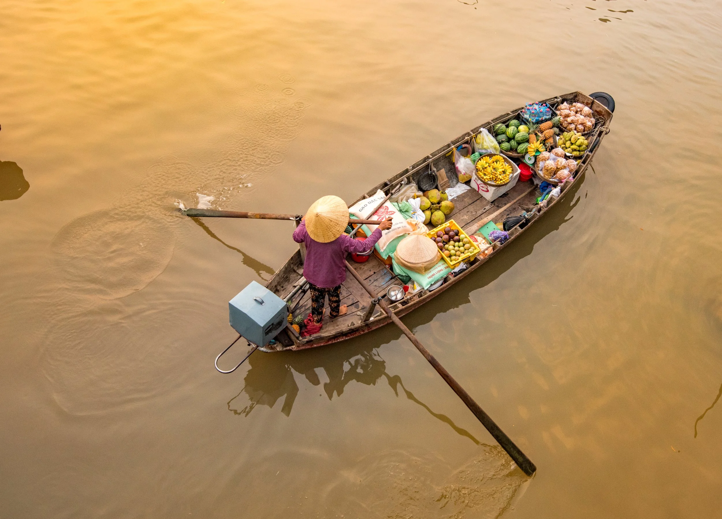 De Mekong Rivier is een mythische stroom in Indochine. Met zijn 4350 kilometer lengte, is het een van de langste waterlopen ter wereld. Een essentiële ader van leven en handel. De rivier ontspringt in China en vloeit verder door naar Myanmar, Laos, Thailand, Cambodja en Vietnam. De Vietnam Delta kenmerkt zich door een doolhof van waterwegen, drijvende markten met kleurrijke bootjes en een afwisseling van dorpjes en drijvende woonboten. Kleuren, geuren en geluiden die heel ons zintuiglijk palet prikkelen. Het leven op het water is hier op haar hoogtepunt en de kinderen leren hier eerst zwemmen voor ze kunnen stappen.